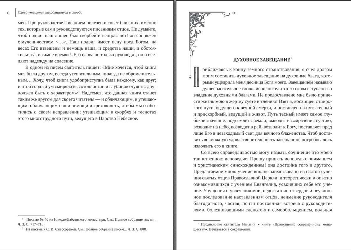 Заключительная часть книги — о скорбях, ожидающих христиан в последние времена. Этой теме святитель Игнатий также уделял немало внимания. Надеемся, что его бесценное руководство послужит в назидание и укрепит в тяжкую годину испытаний.
